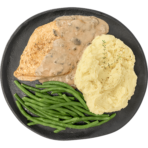 Une tendre escalope de poulet accompagnée d’une délicieuse sauce à la crème , vin blanc et champignons de Paris.
